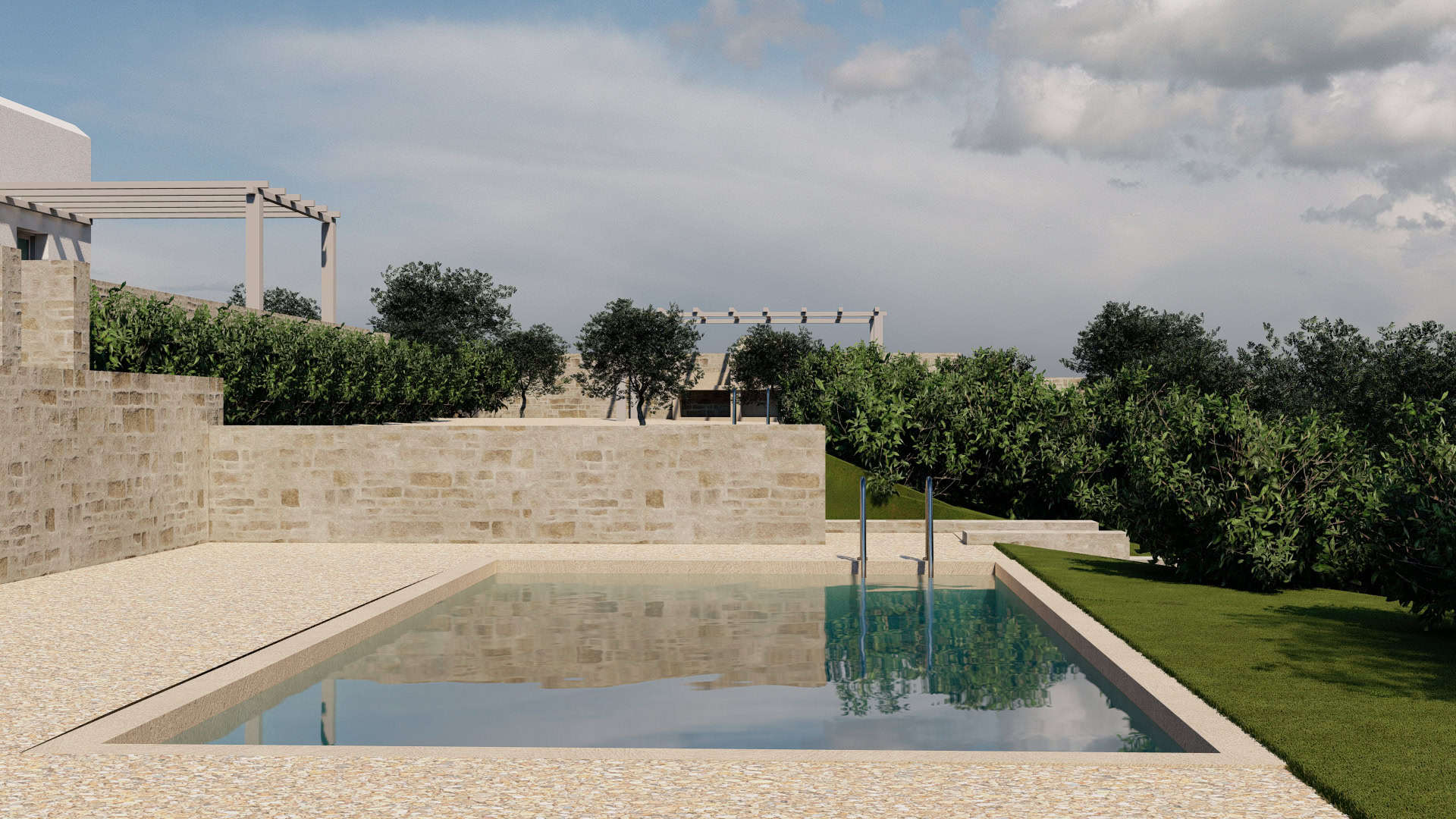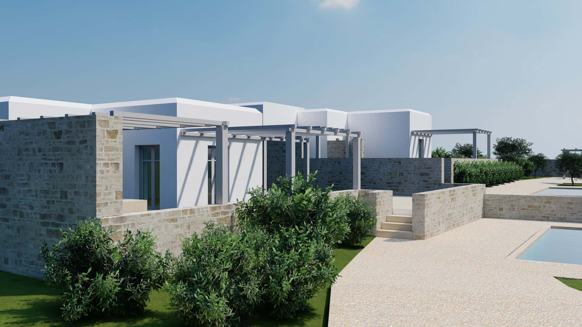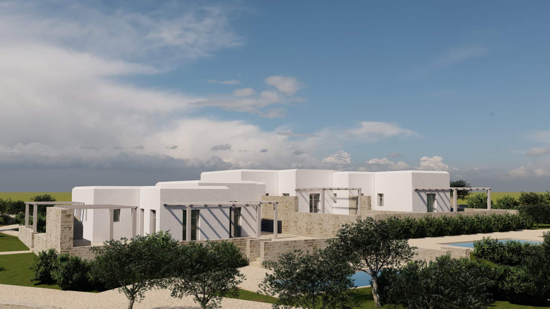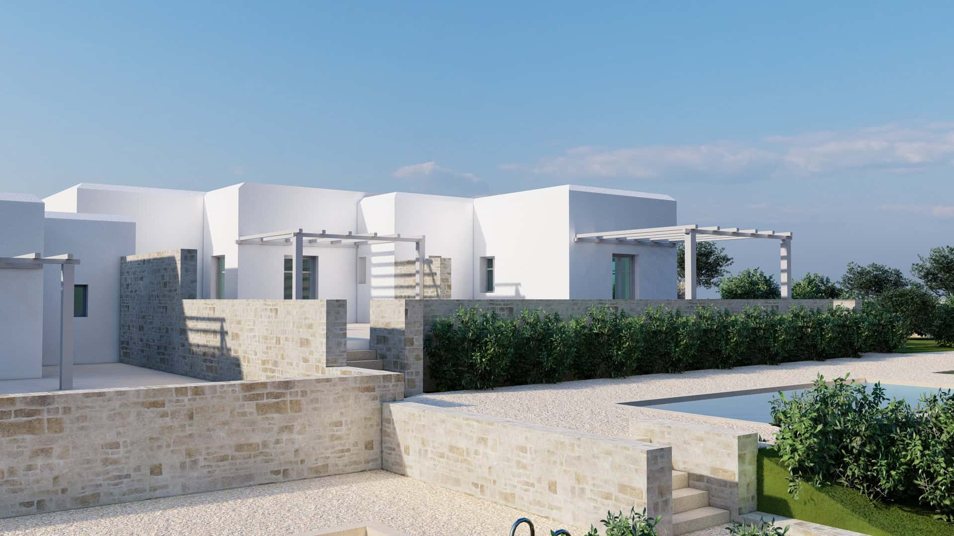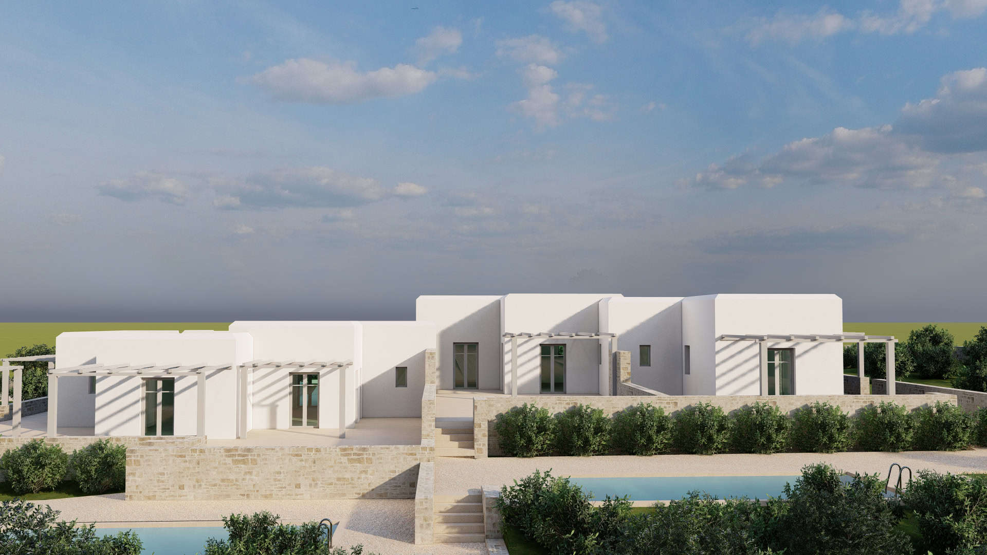Estia Investment has already developed a comprehensive plan for the plot, which includes the construction of four independent luxury residences, each with a private pool. The careful design focuses on maximizing space and views, offering modern and functional homes that blend seamlessly with the natural environment. The company has the expertise and know-how to fully undertake the construction, ensuring high standards of quality and aesthetics.